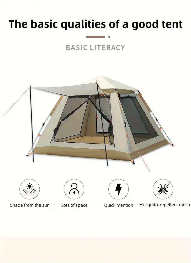 Heavy-Duty All-Weather Windproof & UV-Resistant (UPF 50+) Mosquito Proof Mesh Walls, Automatic Instant Setup, Beige Dome Tent for Outdoor, RV, Backyard - Winter/Summer/Fall/Season, Tent For Camping, Tent Camping, Family Tent, Tents For Camping, Camping Gear And Equipment, Beach Tent, Pop Up Tent Camping, Camping Stuff, Ground Sheet Camping, Car Camping Tent, Camping Ground Sheet, Large Camping Tent, Pop Up Shelter